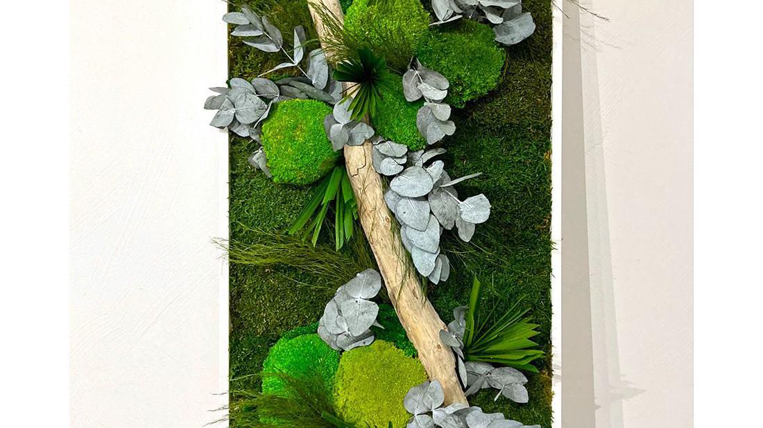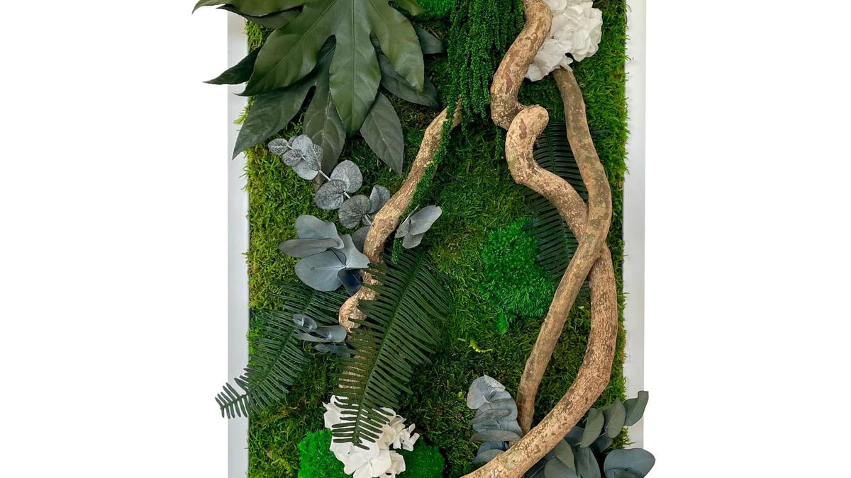 Le Printemps Suspendu célèbre la renaissance végétale. Dans cette composition délicate, Patricia associe mousse tendre, fleurs blanches et touches de vert d’eau pour recréer l’énergie pure du printemps.